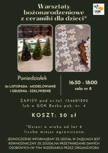 Warsztaty bożonarodzeniowe z ceramiki dla dzieci 18 listopada 2025 0 comments gok@besko.pl Posted in Bez kategorii Podobne posty 0 comments Bez kategorii Bieg Mikołajkowy Czytaj więcej 0 comments Bez kategorii Warsztaty dla dzieci z pieczenia i dekorowania pierników Czytaj więcej 0 comments Bez kategorii Spotkanie z Mikołajem Czytaj więcej Beski Jarmark Bożonarodzeniowy 17 listopada 2025 0 comments Spotkanie z Mikołajem 20 listopada 2025 0 comments Share this About author gok@besko.pl Podobne posty 0 comments Bez kategorii Bieg Mikołajkowy Czytaj więcej 0 comments Bez kategorii Warsztaty dla dzieci z pieczenia i dekorowania pierników Czytaj więcej 0 comments Bez kategorii Spotkanie z Mikołajem Czytaj więcej 0 comments Bez kategorii Beski Jarmark Bożonarodzeniowy Czytaj więcej Leave a Reply Anuluj pisanie odpowiedzi Your comment Your name Your email Your website Zapisz moje dane, adres e-mail i witrynę w przeglądarce aby wypełnić dane podczas pisania kolejnych komentarzy.